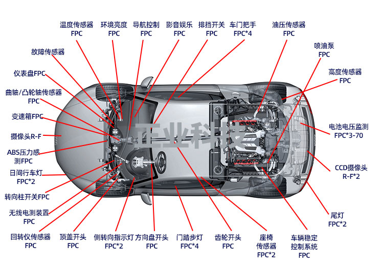 整車FPC用量將超過100片,動力電池需求FPC數(shù)量與面積遠超原有整車車載FPC,新能源汽車的大發(fā)展帶動車載動力電池用FPC需求大幅增長。